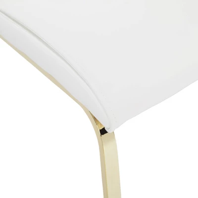 Complete your dining space with the modern Uptown dining collection. Featuring a modern silhouette and glam details. The dining chair is upholstered in faux leather and gold finished legs. Offered in black or white color options. Chair measurements: 18.8″W x 16.5″D x 39.5″H Seat height: 18.5″H Table measurements: 47.3″W x 31.5″D x 29.9″H